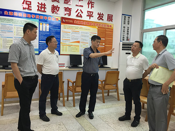 为了解生源地助学贷款工作开展情况,今天中午,汕头市教育局长胡冬同志、副局长詹少龙同志利用午休时间,在陈卓伟副区长的陪同下,专门视察潮阳生源地信用助学贷款办理中心。