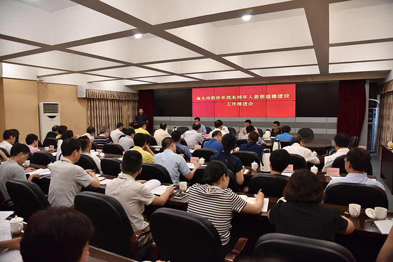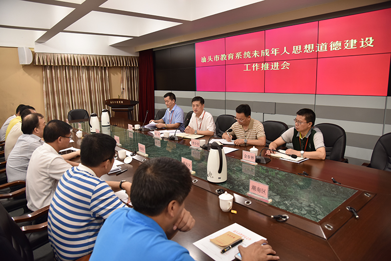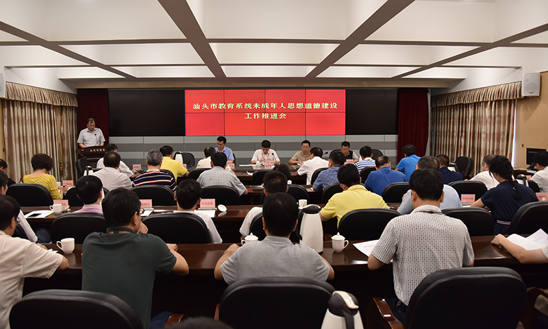 7月7日下午,汕头市教育局召开全市教育系统未成年人思想道德建设工作推进会,会议在市教育局二楼会议厅进行,市教育局局长胡冬、副局长詹少龙、王溅波、纪委书记金春林出席会议,局机关各科室负责人及市直属各学校、各中等职业学校主要负责人,各区县教育局主要领导及工作负责人和教师代表参加会议。会议由市教育局副局长王溅波同志主持。