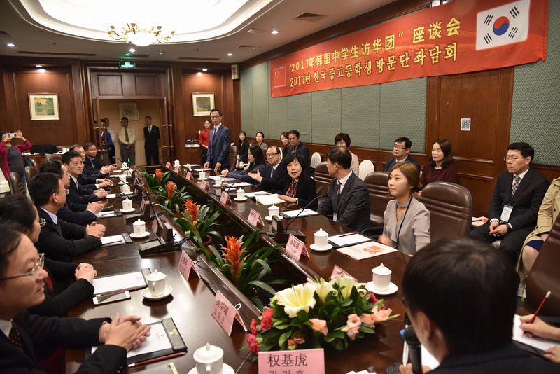 11月23日晚,广东省教育厅和市教育局领导在金海湾会见韩国中学生访华团领队并举行欢迎宴会,双方就两国学生交流进行了热烈友好的交谈。
