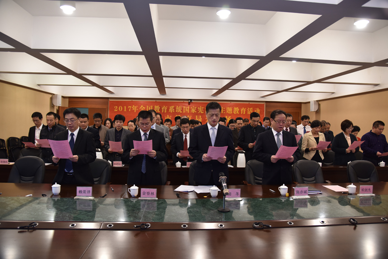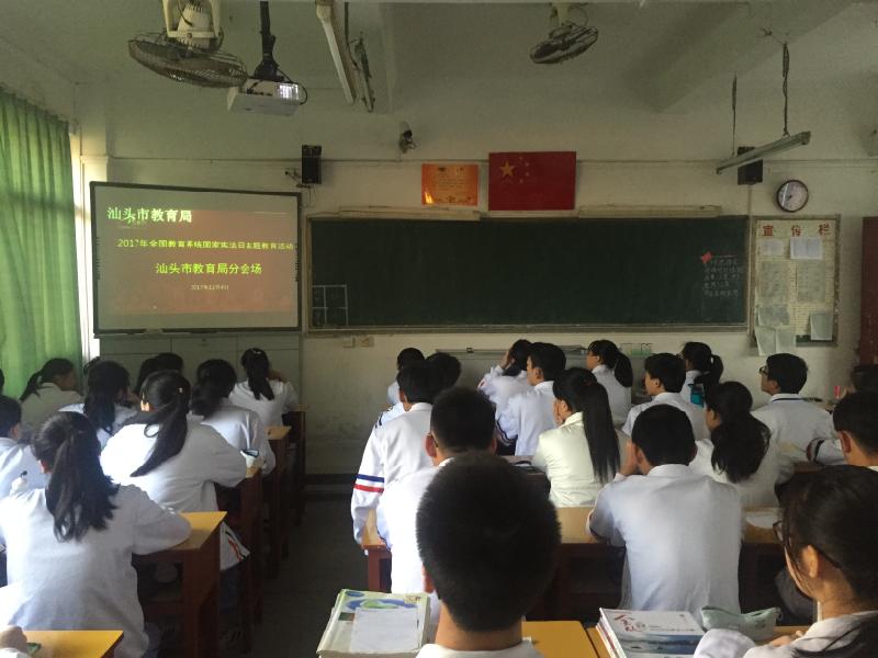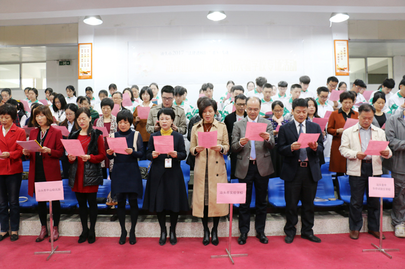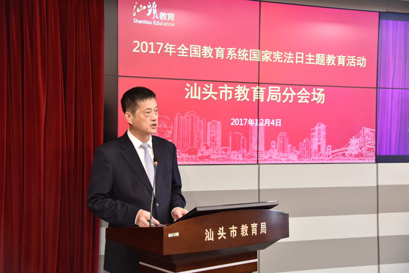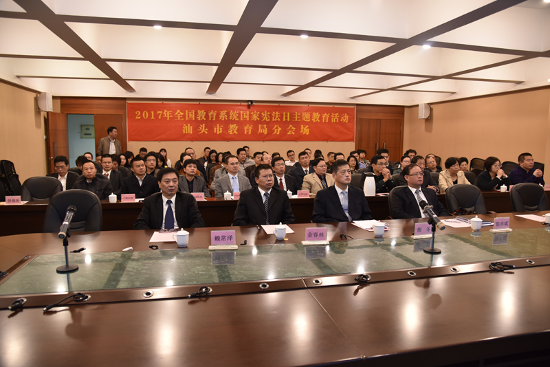 为深入贯彻落实党的十九大精神,增强教育系统干部师生法治观念,树立宪法意识,弘扬宪法精神,维护宪法权威,根据中宣部、司法部、教育部和全国普法办关于开展2017年“12·4”国家宪法日主题教育活动的通知要求,12月4日,汕头市教育局在机关、各区县、市直属各学校设立15个分会场,约一万六千人同步参与全国教育系统国家宪法日主题教育活动。会议由市教育局党委书记、局长胡冬同志主持。
