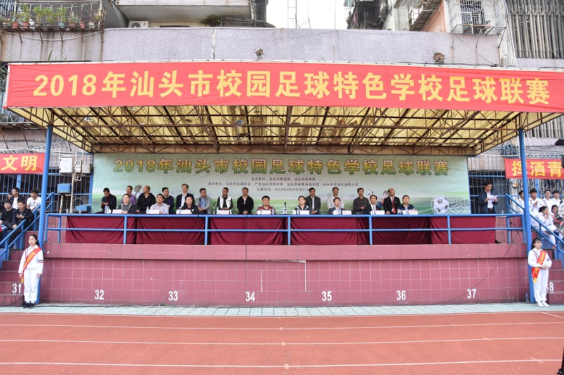 由汕头市教育局、汕头市体育局主办,汕头市足球协会、广东汕头华侨中学、汕头市体育运动学校、汕头市龙湖区金晖小学承办的2018年汕头市校园足球特色学校足球联赛于2018年3月24日在广东汕头华侨中学足球场隆重开幕。开幕式上,汕头市人民政府林依民副市长为比赛开球,汕头市教育局胡冬局长代表主办单位致辞,汕头市桂花小学鼓号队作花样操表演。