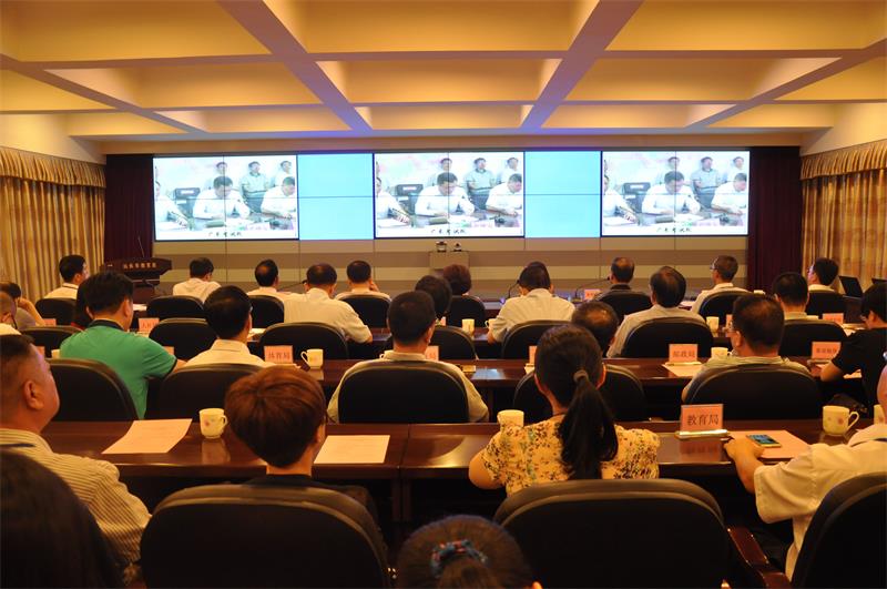 市领导在市教育考试监控指挥中心对全市44个考点进行网上巡考。