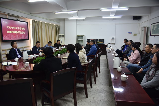 2019年1月30日上午,在市教育局四楼会议室召开汕头市援疆援藏教师座谈会。市教育局局长胡冬同志主持座谈会。副局长王溅波、金春林参加座谈会。