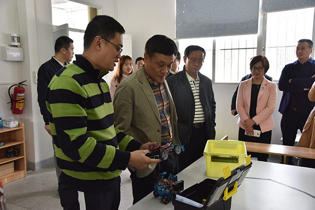 林副市长察看了金荷中学运动场、实验室、网络中心、创客室、录播室,深入课堂了解师生上课情况,还查阅了档案室创文资料的建档情况。对学校深化教育教学改革,提高学生综合素质,创建智慧校园,成为“全国青少年校园足球特色学校”、“广东省科学创客教育体验馆”等工作给予肯定,他希望学校注重教师的团队建设,不断提升管理水平,在区域中发挥示范作用。