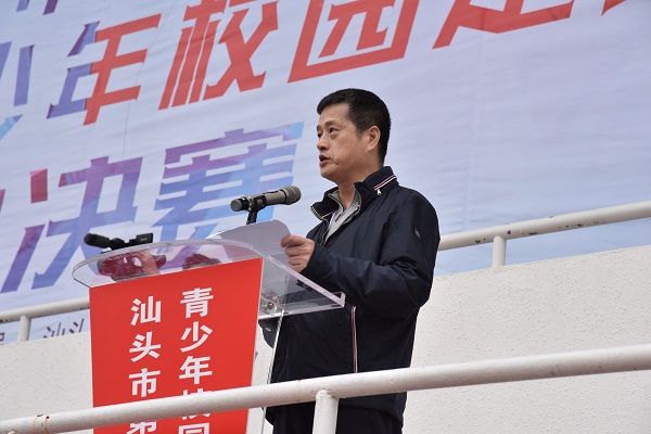 汕头市人民政府林依民副市长参加开幕式并为比赛开球。汕头市教育局胡冬局长在开幕式上致辞,他充分肯定我市学校认真贯彻落实国家、省关于推进青少年校园足球工作,坚持正确的教育理念,立德树人,全面提高学生“德智体美劳”综合素质,全市校园足球发展所取得的成效。同时,要求全体运动员要遵守规则,尊重对手,顽强拼搏,力争运动成绩与“创文”建设双丰收。做到赛出水平、赛出风格、赛出友谊。