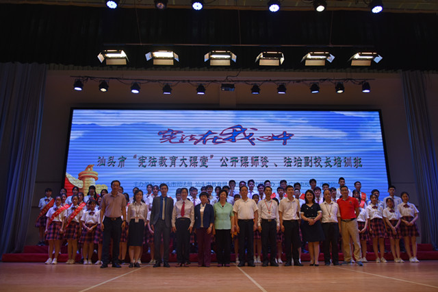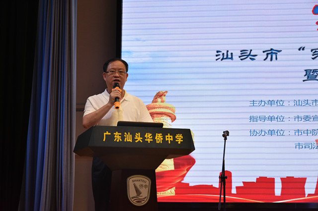 为深入推进青少年宪法学习宣传教育,5月13日上午,市教育局、市司法局、市普法办联合市团委、市广播电视台、市律协等单位在广东汕头华侨中学举办2019年汕头市“宪法教育大课堂”公开课启动仪式暨法治副校长培训观摩活动。