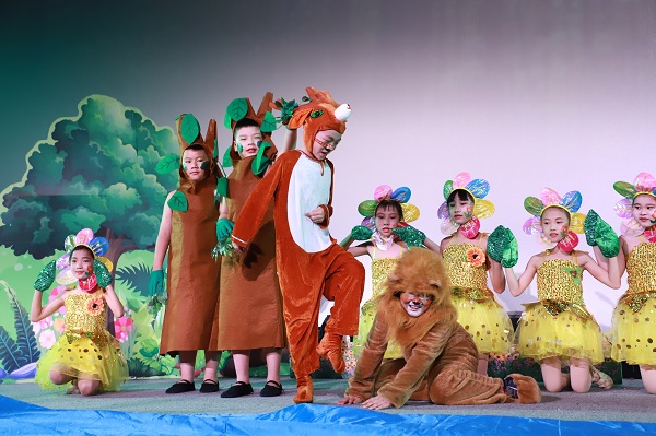来自丹霞小学各个年级的小演员们闪亮登场,分别献上《小马过河》《老鼠嫁女》《鹿角和鹿腿》《黄鹤楼送孟浩然之广陵》、《皇帝的新装》《去年的树》和《漏》等课本剧。