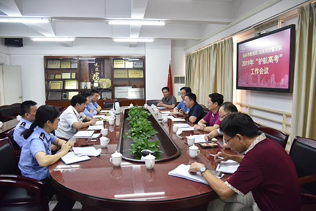 6月3日上午,市公安局陈志伟副局长带领汕头交警陈建鸿政委等有关领导一行到市教育局召开“护航高考”专题工作会议,研究如何为广大考生营造安全畅通有序的道路交通环境。会上,市教育局詹少龙副局长对汕头交警护航高考的工作表示了感谢。市公安局陈志伟副局长就汕头护航高考提出十项措施。