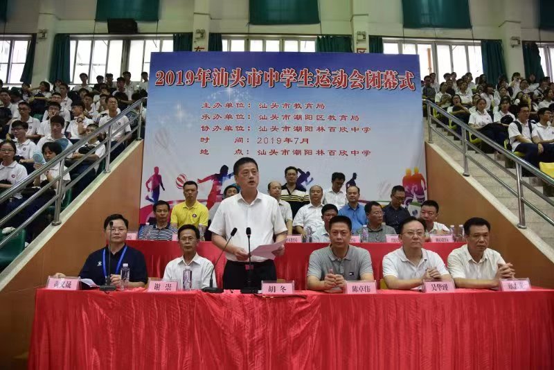 2019年7月31日,由汕头市教育局主办的2019年汕头市中学生运动会在汕头市潮阳林百欣中学降下帷幕。市教育局局长胡冬同志致闭幕辞并宣布运动会闭幕。