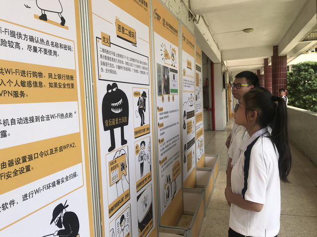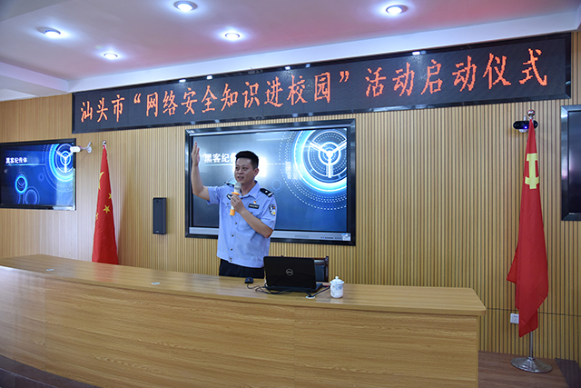 上午10:00,市委网信办、市教育局、市公安局在汕头市东方中学联合举办“网络安全知识进校园”活动启动仪式。市委网信办陈铭副主任、市教育局金春林副局长和市公安局、金平区委网信办、金平区教育局、金平区公安分局等相关单位同志出席活动并向东方中学学生代表赠送了网络安全知识的宣传资料。市公安局网警支队邱楠同志在会上做了《黑客纪传体》专题讲座,向现场的东方中学师生普及网络安全知识并做问答互动,气氛活跃,让现场师生受益匪浅。
