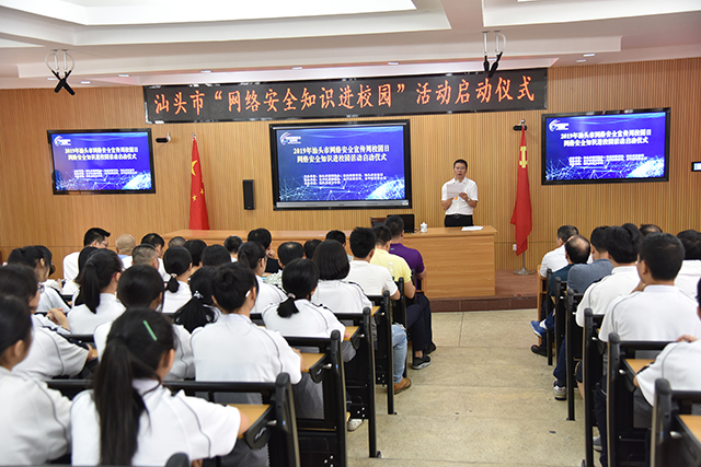 “网络安全知识进校园”活动启动仪式和专题讲座通过汕头云平台向全市中小学校进行网络直播和点播,各中小学校积极组织学生收看。