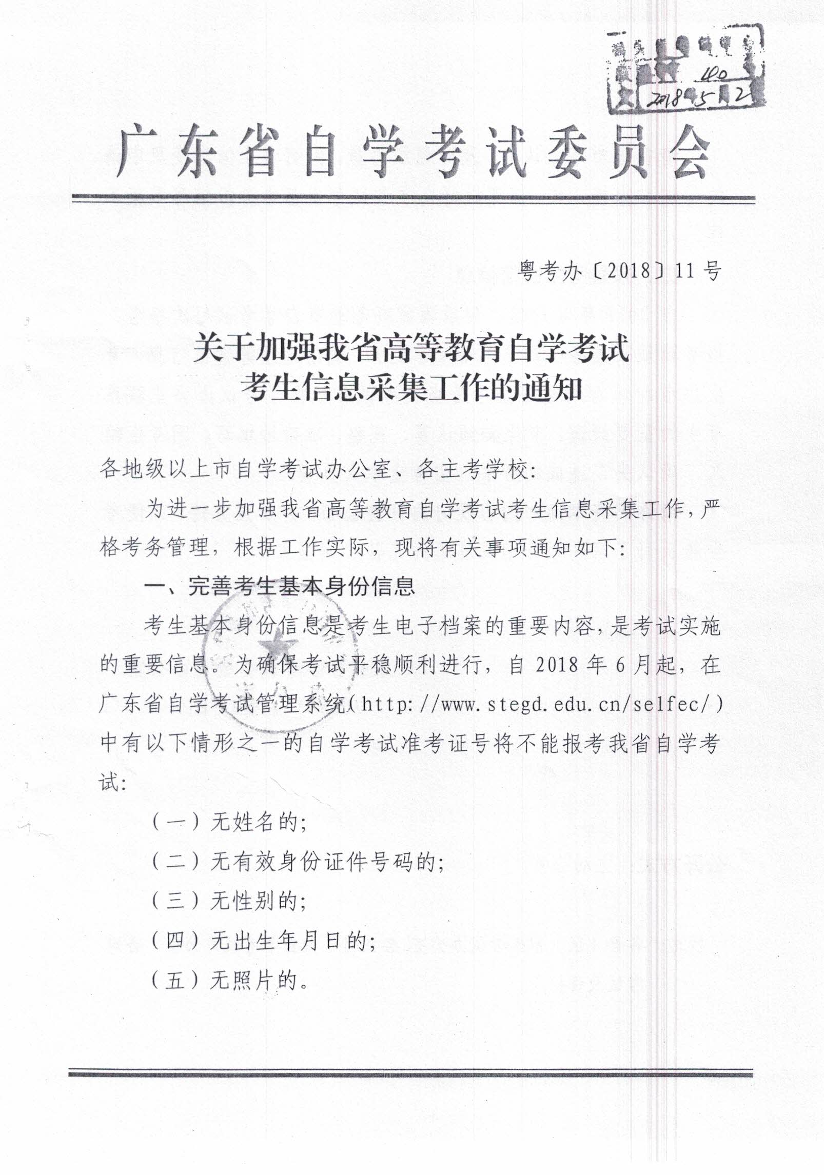 关于加强我省高等教育自学考试考生信息采集工作的通知