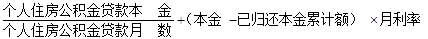 (二)按月等额本金还款方式。每月等额偿还个人住房公积金贷款本金,个人住房公积金贷款利息随本金逐月计算,每月还款额计算公式为: