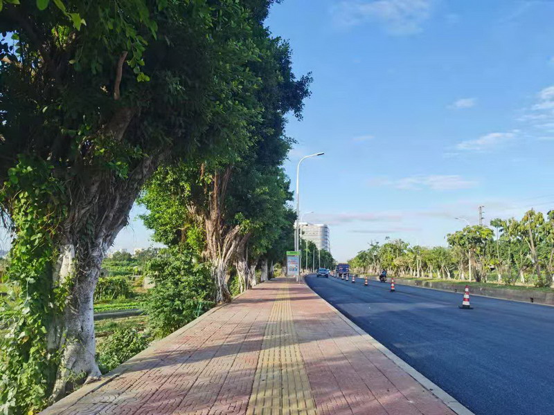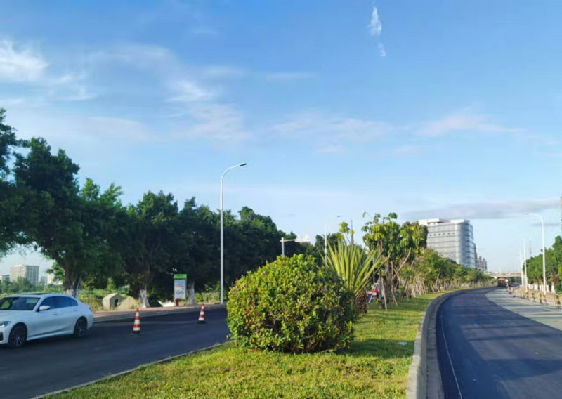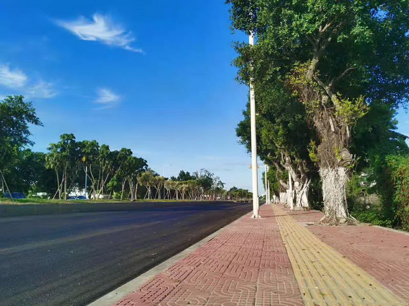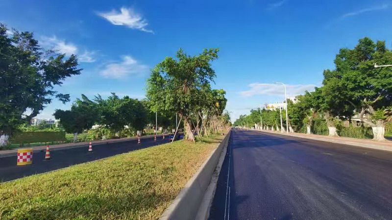 南翔路(县道063线)路面改造工程西起昆仑山路,东止于外砂迎宾路,路线全长1.57km,路基宽度32m,双向4车道+2条摩托车、自行车混合车道,设计车速为40km/h,按二级公路技术标准设计(兼城市次干路)实施建设。改造工程主要建设内容包括对原道路路面病害处治后进行沥青路面热再生处理;建设污水收集支管及相关设施;更换破损的人行道砖及路缘石;树池整治、路缘石刷漆、重新施划交通标线;对中央绿化带、迎宾路与南翔路交叉口环岛进行培土植草等。项目于今年8月初启动建设,市公路事务中心全力推进工程各项工作,积极督促施工单位切实加大人员、机械、材料投入,及时调整施工组织,严格按照施工设计图纸并因地制宜保障项目施工效果。