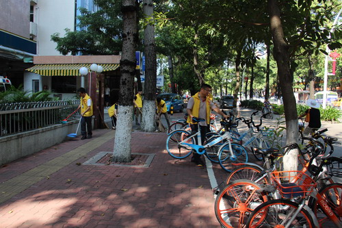 这次巩卫创文清洁环境卫生活动主要是对我局周边的道路步道和车场环境进行清洁整治。今天上午8时许,由市公路局各科室、设计院组成的20名青年志愿者准时在局办公大楼前集中整装待命。9时一到,大家热情洋溢分头分组行动,有的扫地、有的清理杂草、有的将共享单车整齐摆放至规定区域、有的清理垃圾杂物。经过1小时的行动,道路步道清洁了、共享单车摆放整齐了,汗水换来了整洁的环境,大家都会心地笑了。