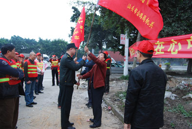 3月8日上午九点,局机关科室和直属分局干部职工共120人,在局领导的带领下,到管养的省道233线潮汕路开展养护保洁活动。活动启动举行了简短的授旗仪式,副局长曹爱民同志和工会主席杨卫同志分别向局机关及直属分局代表授旗,宣布活动开始。