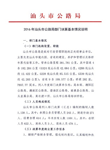 点击进入:1.2016年汕头市公路局部门决算基本情况说明