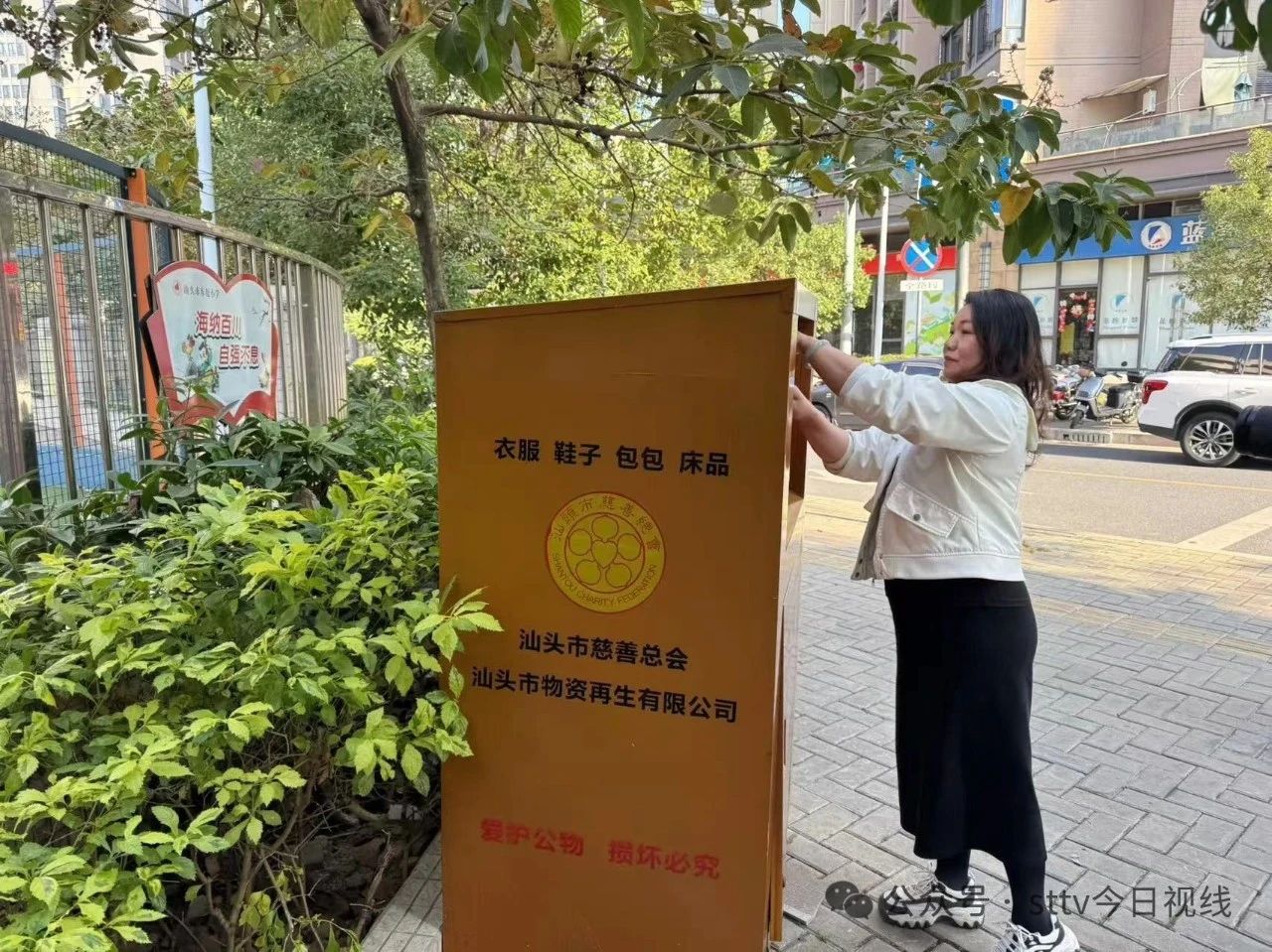 在金砂街道金丰社区,这个浅橘红色的“慈善公益回收箱”格外显眼,箱子主要用于回收旧衣服、鞋子、包、床品等。记者在现场看到,不时有市民前往投放旧衣物。