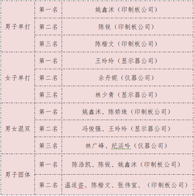 乒乓球赛:小球大乾坤,指尖定胜负 乒乓球台前,银球如流星般穿梭,划出一道道优美的弧线。各位乒乓球爱好者陆续登场,各显身手,各施所长,比赛过程精彩纷呈,掌声、呐喊声、欢呼声此起彼伏,整个赛场充满了热烈、欢乐的气氛。 本次比赛不仅有传统的男、女单打和团体比赛,还首次增设了男女混双比赛。相对于单打比赛的“暴力美学”,混双比赛更具观赏性。混双比赛规则严格,要求双方交替击球,对站位灵活性与跑动要求极高。男女选手技术特点差异明显,队友之间的配合度至关重要。在混双赛场上,选手们默契十足,一攻一守,配合得天衣无缝,为观众们带来了一场场视觉盛宴。 经过一番激烈的比拼,最终以下选手和团队崭露头角: