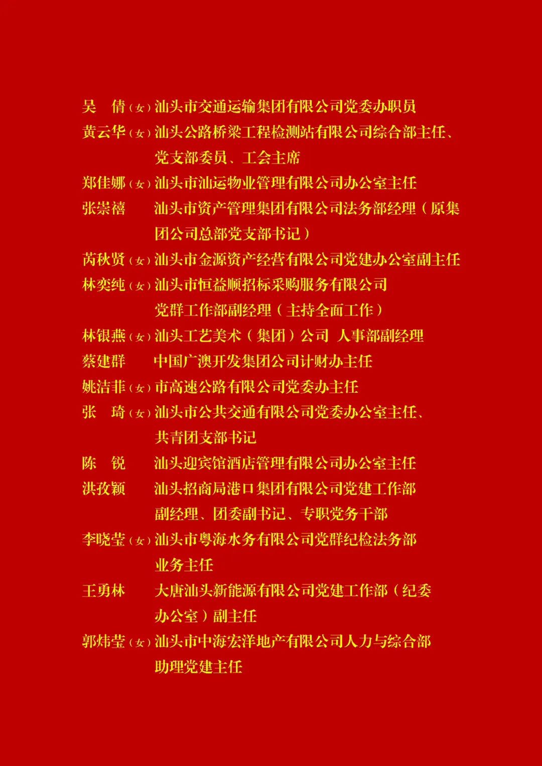 为庆祝中国共产党成立103周年,6月26日,汕头市国资系统召开庆祝中国共产党成立103周年暨“七一”表彰大会,表彰近年来国资系统的优秀共产党员、优秀党务工作者和先进基层党组织,以及市国资系统2023年度基层党建特色品牌,青年干部“育苗固基”读书学习活动“优秀学习小组”“青年学习之星”,“我为国资国企高质量发展建言献策”主题演讲比赛获奖人员,以此激励国资系统各级党组织和广大党员干部锐意进取、团结拼搏、再创佳绩,为推进中国式现代化的汕头实践贡献国资国企的力量。