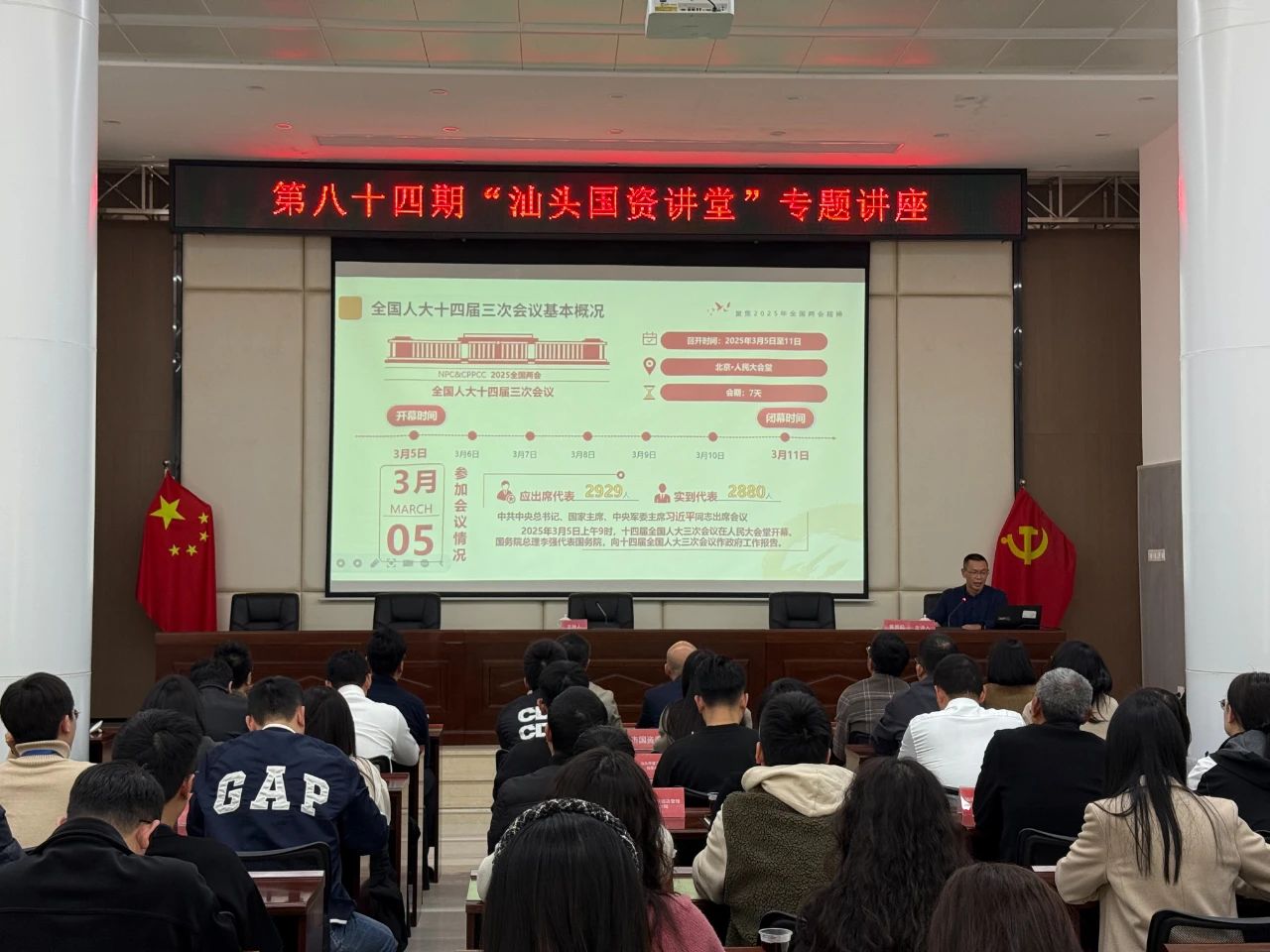 2025年3月20日,汕头市国资委在市资产集团会议室举办第八十四期“汕头国资讲堂”专题讲座,深入学习贯彻全国两会精神,把全国两会精神学出理论深度、学出务实举措。市国资委机关干部职工及市属国有企业代表参加。