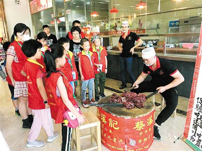 而潮汕独特的美食文化,也是研学的精华课程。学员们在餐饮老字号蔡溪记品尝潮汕牛肉火锅的同时,还可以参观并体验手打牛肉丸的制法,听师傅讲述牛的构造、牛肉种类、切牛肉的刀法等,领悟潮汕美食与自然、人文的相融。