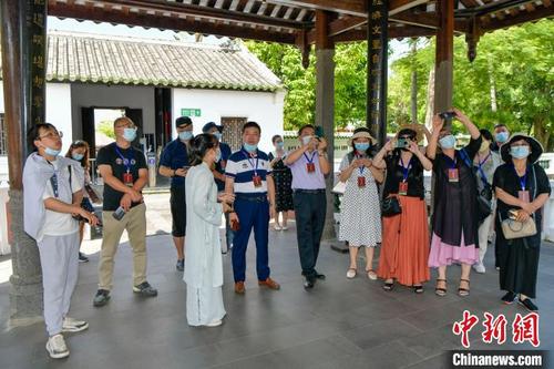 9月14日,参加2021“行走中国·海外华文媒体海南行”活动的24位海外华文媒体高层人士,走进海南省儋州市东坡书院感受东坡书院千年文化魅力。