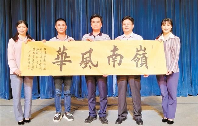李永杰与“南粤新乡贤”陈振勇一起赠送书法给广东潮剧院二团