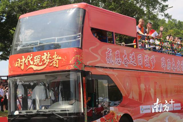 此次巡游活动中,汕头市以最高礼遇向74名来自各界的爱岗敬业、勤劳奉献、拼搏进取的市民代表致敬,邀请他们共同见证仪式启动,部分代表还登上专设的“时代筑梦者”花车。