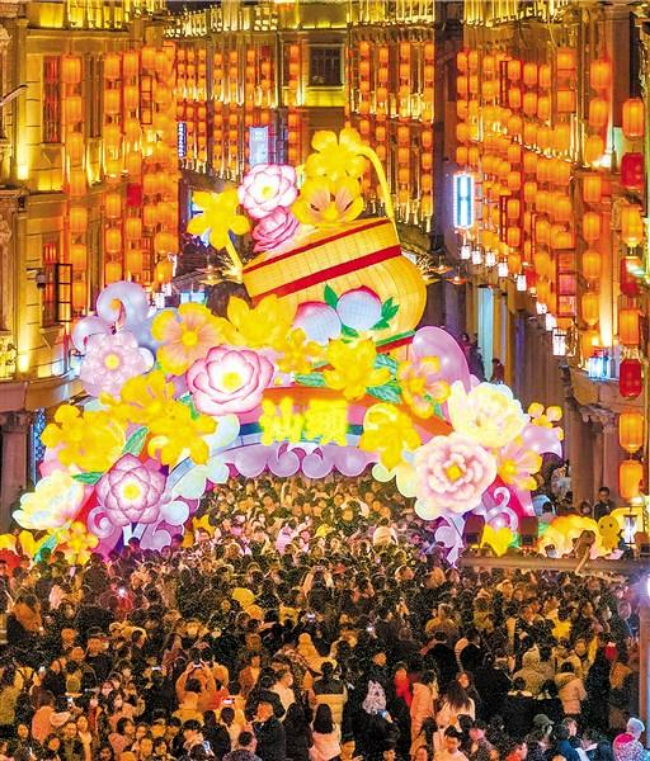 夜幕下,月色婵娟、游人如织。中山纪念亭四周建筑的天际线上,创意气模“拾福”“番娃”错落分布,增添了几分活泼与趣味。1.2公里的骑楼长街以安平路为轴,自小公园核心区绵延至西堤路,亮起英歌舞灯组“时迁”、潮汕古厝“巳巳如意”大门、英歌萌娃、潮剧“陈三五娘”、木雕“龙虾蟹篓”、花园牌坊、海洋观廊、学子挥春等造型花灯。穿梭灯海间,满满的侨乡“国际范”和浓郁的潮汕文化氛围扑面而来,安平路“南洋掠影”风情街上,一组组以泰国、马来西亚、新加坡、印尼、柬埔寨、老挝等国家和香港、澳门地区为主题的美陈灯展彰显国际视野,更以文化为纽带凝聚侨心、汇集乡情,让海内外潮人惊喜不已、连连称赞。“百千万”灯谜台、英歌舞机器人表演、营灯民俗巡游、非遗文创墟市前则是人头攒动、热闹喧嚣;营灯游巷、春讯盈祥、遗风赓扬、潮韵飘漾、恬野焕彩等沉浸互动环节,吸引人群驻足体验、拍照留念。