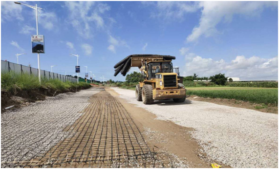 东海岸大道北延连接南澳大桥道路及配套项目:目前,高压旋喷桩本周完成112根,累计完成291根,累计完成率87.65%,本工程除管线、征拆影响区域外均已完成;左幅碎石垫层铺设820m³,累计完成7932m³,累计完成率34.31%;左幅土方填筑本周完成9924m³,累计完成17874m³,累计完成率22.23%;左幅雨水管线沟槽开挖Y2-12~Y2-23,累计开挖136m;左幅K1+340-K1+220交通疏解便道碎石垫层铺设220m³,土工格栅铺设1200m²。