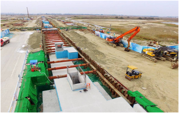 东海岸新城新溪片区地下综合管廊项目:目前全面开展主体工程建设,已完成主体混凝74688m³,累计完成总进度53%。