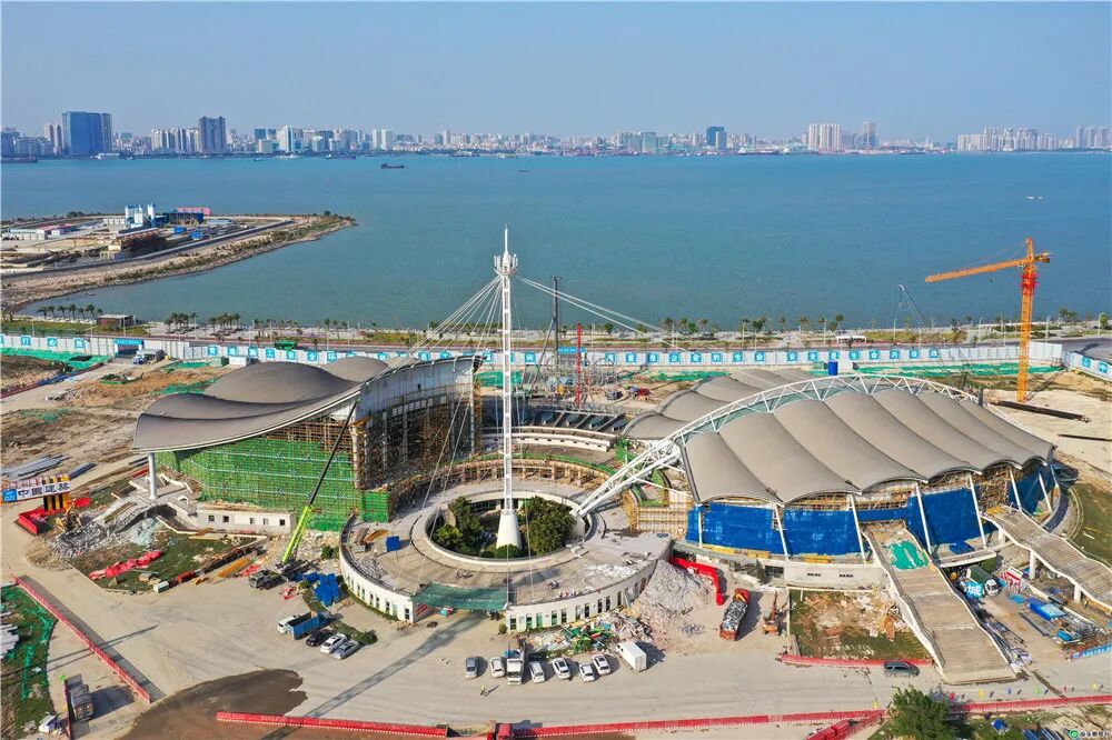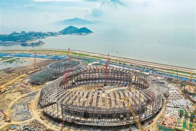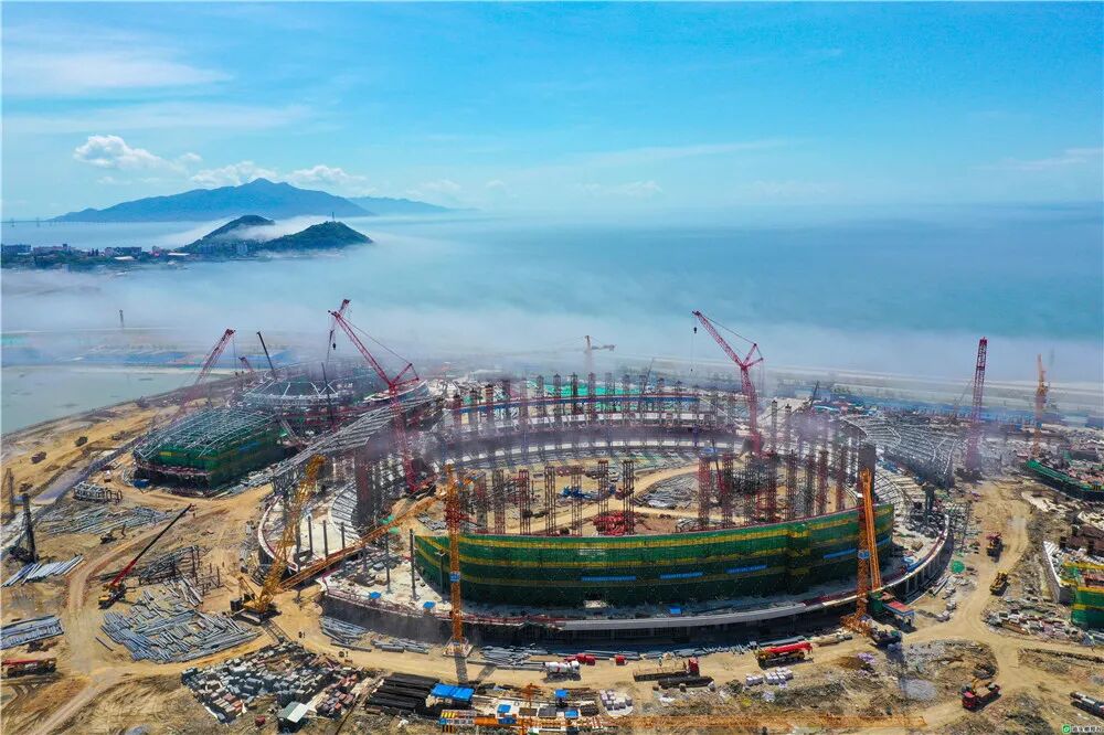 8月30日上午,位于广东省汕头市海边的2021年亚洲青年运动会体育场完成最后一个钢结构管件的吊装作业,主场馆全面实现钢结构封顶,设计图上“飞舞的浪花”造型开始在现实中慢慢显现。