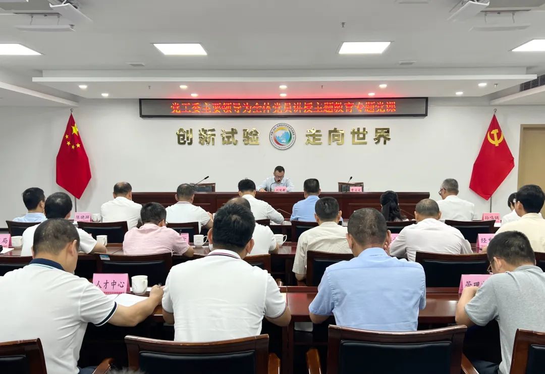 11月8日上午,华侨试验区党工委书记、管委会主任刘俊毅同志围绕“以习近平新时代中国特色社会主义思想为引领,开创华侨试验区高质量发展新局面”主题,为试验区全体党员讲授主题教育专题党课。华侨试验区党工委委员、管委会副主任曹安定主持会议。