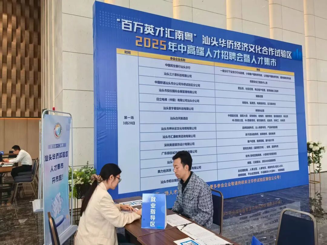 3月28日下午,“百万英才汇南粤 汕头华侨经济文化合作试验区2025年中高端人才招聘会暨人才集市”系列活动正式开启。现场共14家企业参会,提供165个工作岗位,线上线下吸引求职者150人次。 到场有汕头三六零科技有限公司、中国联通汕头市分公司华侨试验区分公司、中国民生银行汕头分行、日立电梯、寰宇星链等行业龙头企业、国有企业、上市公司、优秀民营企业、中外合资公司,涵盖数字经济、金融服务、文化创意、商务会展、设备制造等重点产业。企业诚意满满,招聘岗位薪酬高、福利优、前景广。超半数岗位月薪达10000元,不仅有十三薪、年终奖、福利保障、技能培训,更详细展示晋升空间、发展前景。
