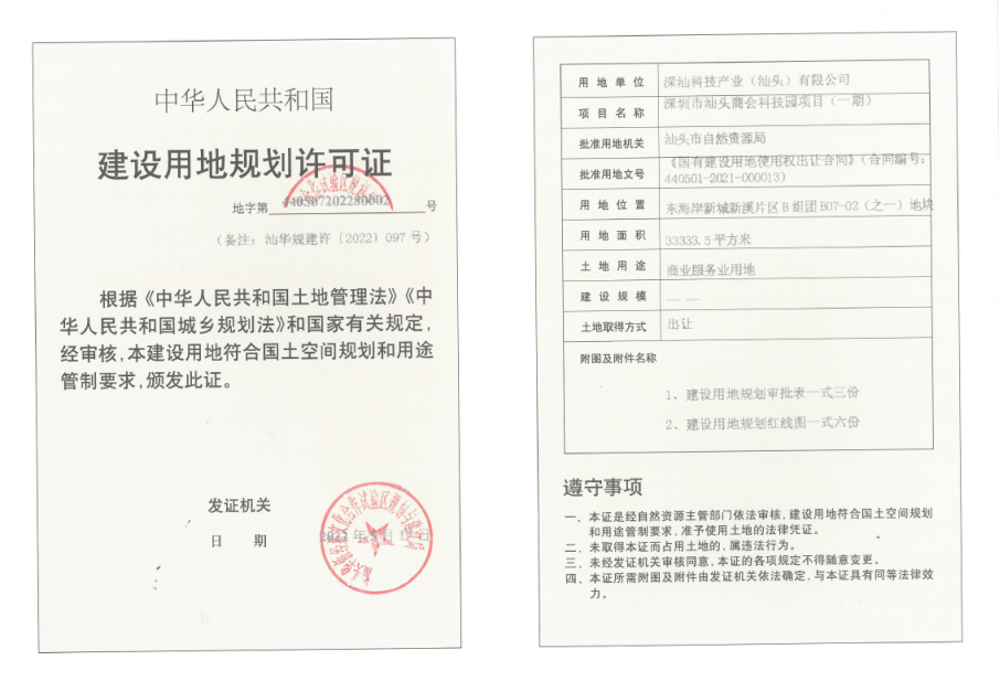 根据《中华人民共和国城乡规划法》第三十八条规定,经审核,本用地项目符合城乡规划要求,颁发此证: