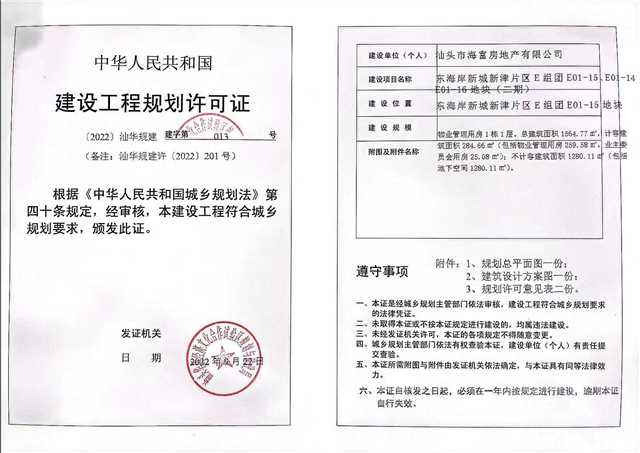 许可证号: | 〔2022〕汕华规建建字第013号 |
