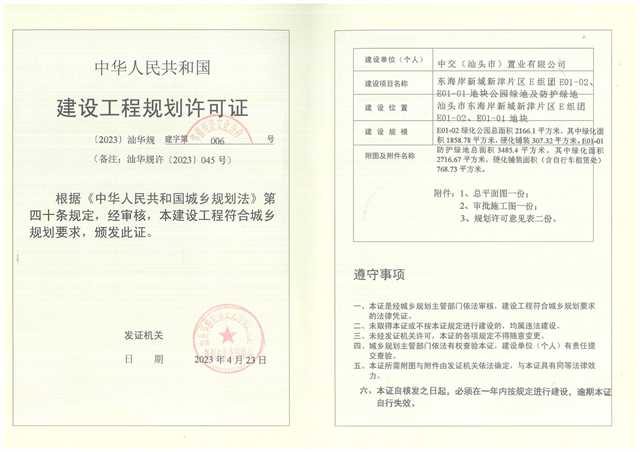 许可证号: | 〔2023〕汕华规建字第006号 |