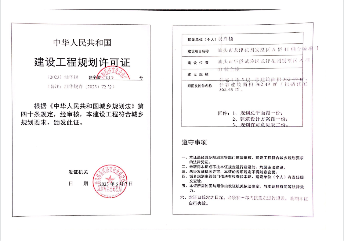 许可证号: | 〔2023〕汕华规建字第013号 |