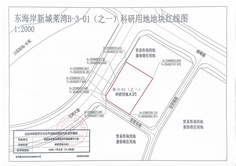 用地位置: | 汕头市东海岸新城莱湾B-3-01(之一)科研用地地块 |