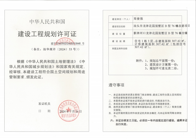 根据《中华人民共和国城乡规划法》第四十条、四十三条规定,经审核,本建设工程符合城乡规划要求,颁发此证: