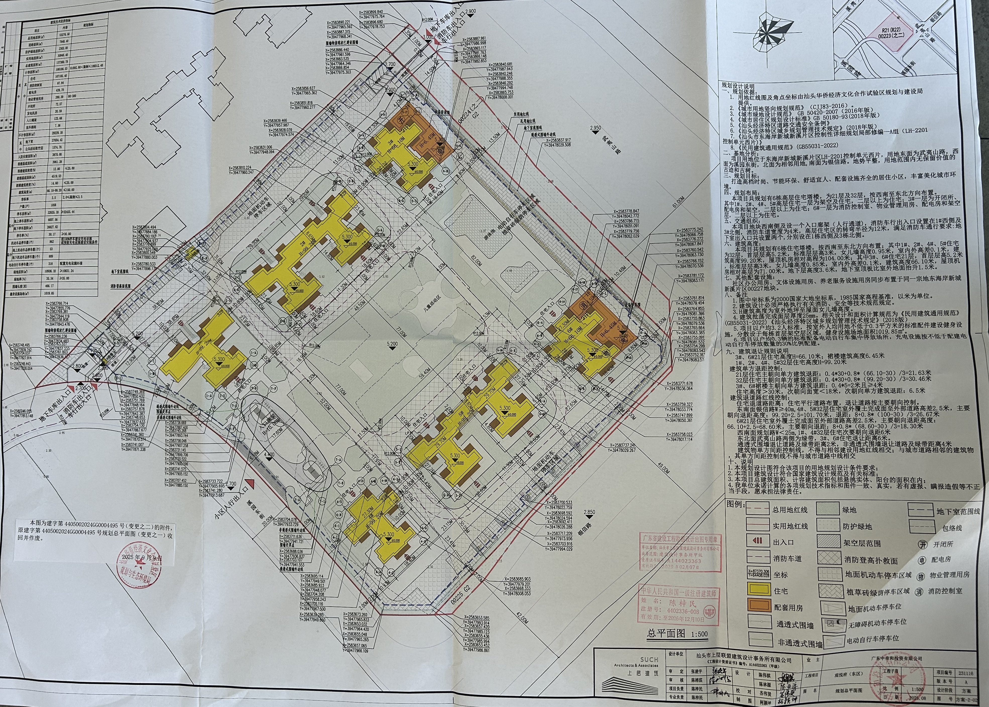 建设规模: | 本次变更后,建设规模为:高层住宅4栋32层和2栋21层,地下室1层。总建筑面积137380.78㎡,计容建筑面积108186.53㎡(包括住宅107185.4㎡,发电机房20.59㎡,开闭所72.57㎡,配电房428.7㎡,消防控制室67.84㎡,门顶123.68㎡,室外梯间7.36㎡,物业管理用房280.39㎡);不计容建筑面积29229.18㎡(包括公共活动架空层1574.76㎡,地下空间27654.42㎡)。通透式围墙长度466.17米(含非通透式围墙49.36米)其他内容不变,按原建字第4405002024GG0004495号( GG〔2024〕05号)意见表及变更之一内容执行。 |