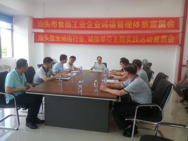 根据上级工作部署,6月20日下午,市工信局组织召开汕头市食品工业企业诚信管理体系暨盐业诚信行业、诚信单位主题实践活动宣贯会。市工信局领导、局业务科室、省盐业集团汕头有限公司等企业领导、业务负责人参加会议。