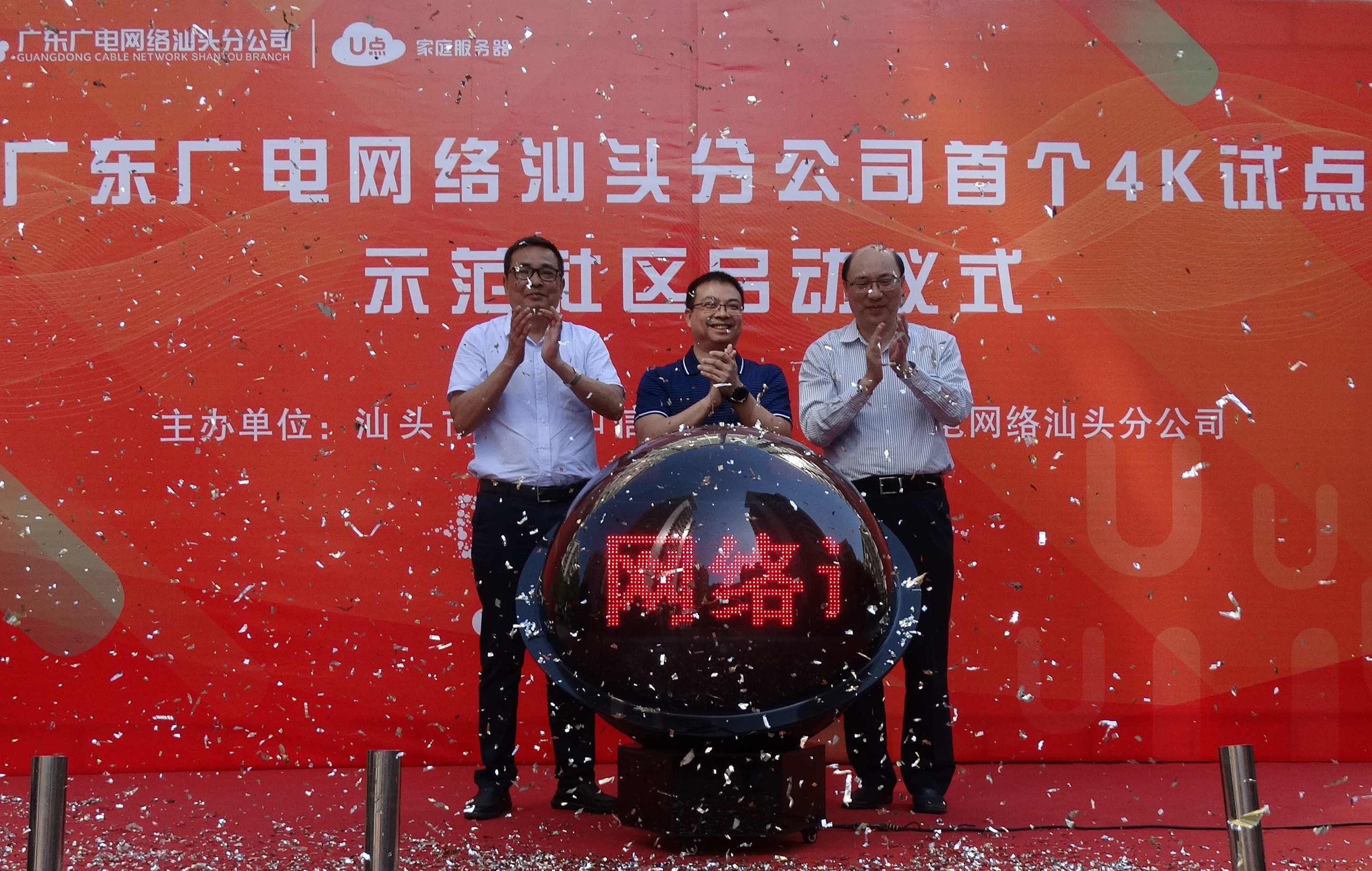 10月13日上午,由市经信局、汕头广电网络公司主办,我市首个4K试点示范社区创建启动仪式在金平区广厦街道景天园小区举行。市委宣传部副部长李逸夫、市经信局局长陈春松出席启动仪式,并与汕头广电网络公司总经理张建宏共同为仪式点亮启动球,标志着4K电视正式走进了汕头市民的日常生活。