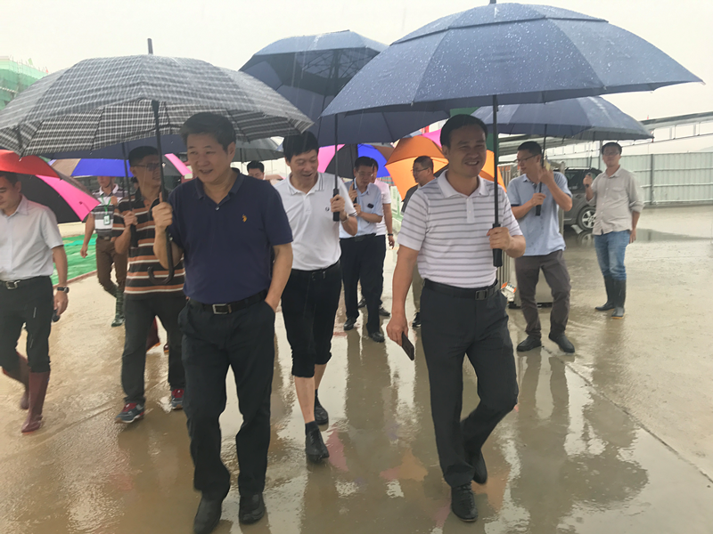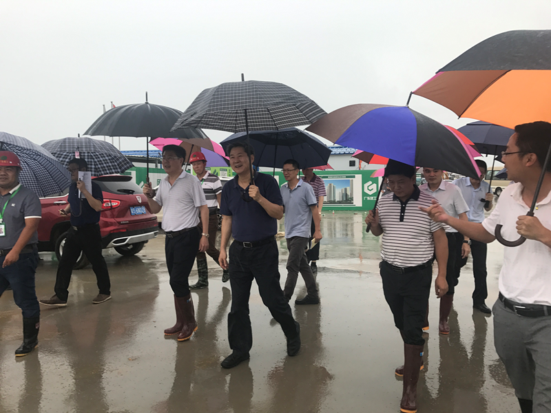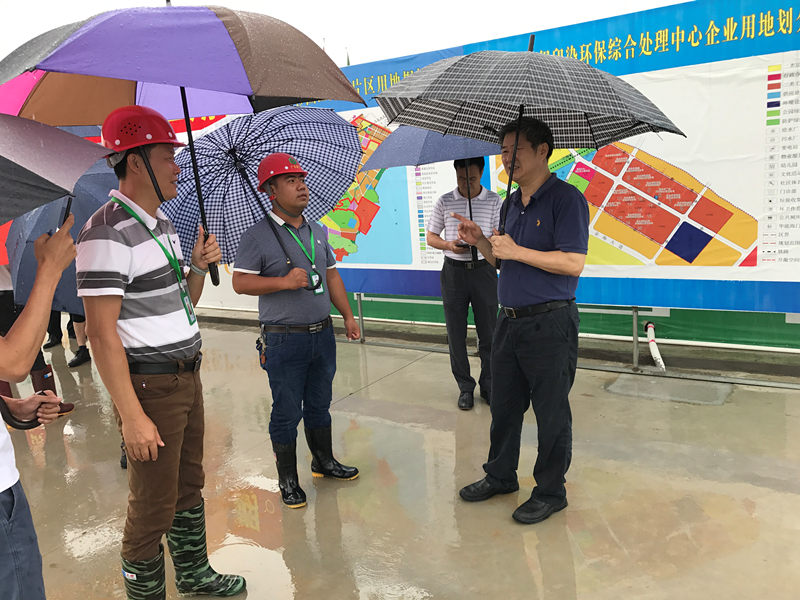督导组一行冒雨实地察看了潮南区印染中心污水处理厂、企业自建厂房、通用厂房项目建设现场,潮阳区印染中心污水处理厂厂区、通用厂房建设现场,并听取了两印染中心的建设进展情况汇报。