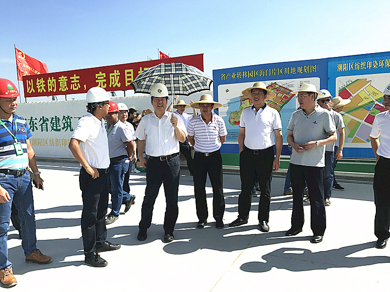 督导组一行实地察看了潮阳区印染中心污水处理厂、企业自建厂房及通用厂房建设现场,潮南区印染中心污水处理厂、企业自建厂房及通用厂房项目建设现场,并听取了两个印染中心的建设进展情况汇报。