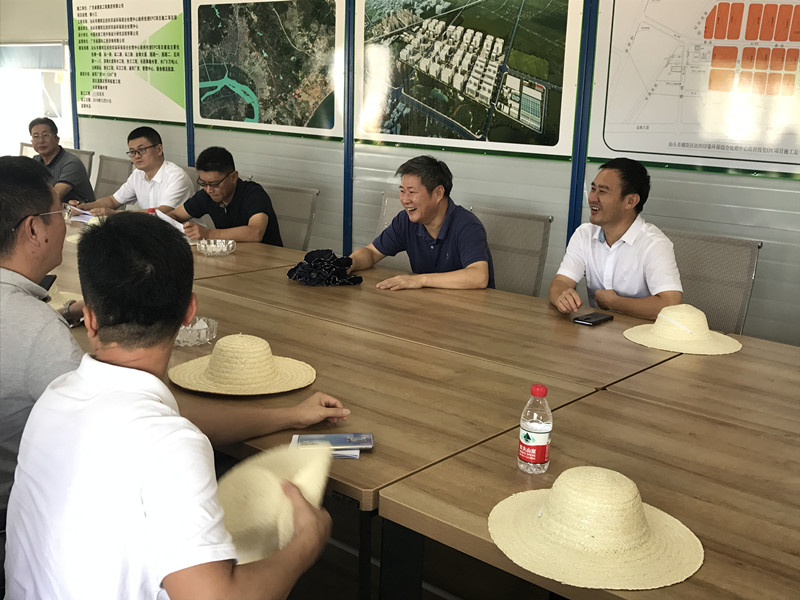 督导组一行实地察看了两潮印染中心污水处理厂、企业自建厂房及通用厂房建设现场,并听取两个印染中心的建设进展情况汇报。