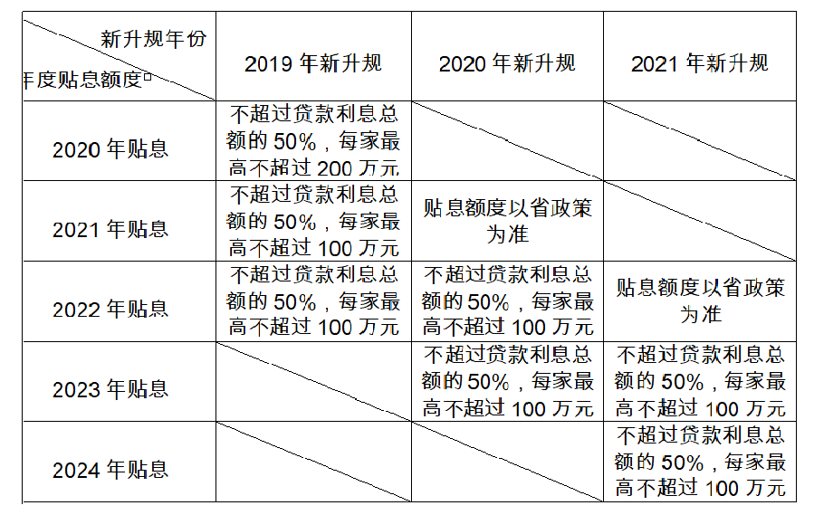 政策解读:2019-2021年各年份新升规工业企业贷款贴息标准如下表