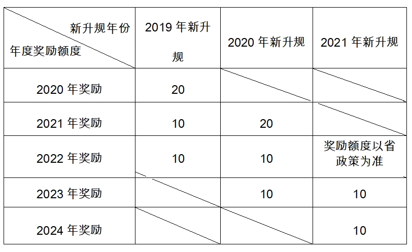 政策解读:2019-2021年各年份工业企业新升规奖励标准如下表