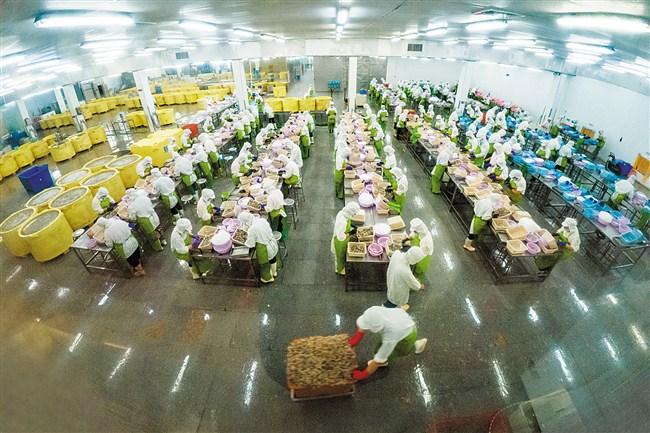 浸泡、分拣、冷冻,上百名身着统一服装的员工正在熟练地剥虾去壳,对新鲜海虾进行精细化加工,水产车间现场一派繁忙有序作业景象。汕头市锦泰水产实业有限公司是一家从事水产品进出口加工和销售的企业,海门镇得天独厚的海洋资源为企业发展提供了优质的原材料,其产品已远销50多个国家和地区。海门镇大力扶持企业发展的暖企措施,大大增强企业发展的信心。